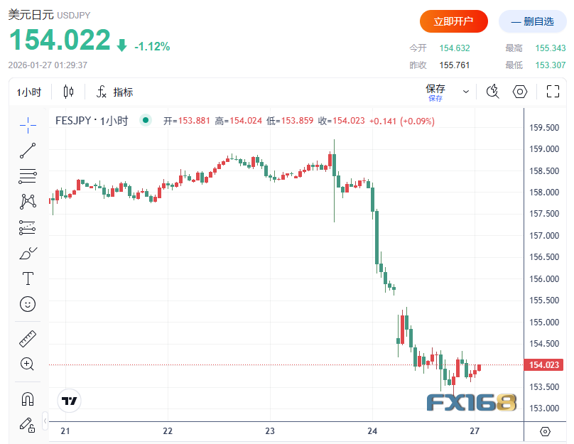 日元的强势反弹,正值交易员开始猜测美日两国可能正在酝酿自2011年日本大地震后G7集体行动削弱日元以来的首次协同干预。 瑞银资产管理多资产策略主管埃文·布朗(Evan Brown)表示:“市场正在接收到一个信号,即(美国)政府并不希望美元显著走强。如果确实如此,那么美元的上行空间就会受到限制,走势将更偏向下行。” 他补充称,这也叠加了对美元的其他压力,例如机构投资者可能正在增加对冲,以应对美元波动带来的风险。 美元/瑞郎(另一避险货币)周一也下跌0.7%,推动其跌至2015年以来最低水平,报0.775。欧元/美元则升至接近其自2021年以来的最高水平。 日元的反弹发生在日本官员与投资者对日元与日本债券市场可能出现同步抛售的担忧加剧之际,尤其是在2月8日即将举行的临时大选之前。 本月早些时候,在交易员对日本新任首相高市早苗提出的刺激计划作出反应后,日元一度触及18个月低点。投资者担忧,日本当局面临艰难选择:要么通过提高利率支撑日元,要么维持较低借贷成本以遏制日本国债市场的抛售。 野村首席外汇策略师后藤祐二郎(Yujiro Goto)表示,尽管目前尚无数据证实市场传闻,但鉴于汇率波动幅度远超单纯“口头干预”通常所能解释的范围,日本当局可能已经在周一直接干预汇市,“这种可能性很高”。 后藤指出,美元如此急跌,通常会触发投资者“逢低买入”推动反弹。“如果没有干预,你今早可能会看到美元回升。所以我不会惊讶如果日本已经进行了干预。”他表示。 交易员也对未来进一步汇率剧烈波动保持警惕。CME集团编制的美元/日元汇率隐含波动率指数升至去年7月以来最高水平。 日本当局上一次直接干预外汇市场是在2024年,共计四次入市买入近1,000亿美元日元,以支撑当时一度跌至160的汇率水平。 周一日元的涨势在日本财务省外汇事务最高官员三村淳(Atsushi Mimura)对记者表示“我们将继续适当应对外汇波动,并在必要时与美国当局密切合作”之后进一步加速。 他的表态紧随高市早苗周日的讲话。高市表示,政府将采取“一切必要措施”,应对投机性、且“高度异常”的市场波动。 交易员称,市场之所以如此反应,是因为越来越多人认为美国显然与日本一样,对日元长期疲弱感到担忧,从而扭转了此前超过三个月的持续贬值趋势。 摩根大通东京高级经济学家本杰明·沙蒂尔(Benjamin Shatil)表示:“市场认知才是关键。如果市场认为日本是在与美国协同行动,那么口头干预就会变得更有效。这可能已经足以推动市场走势。” 日元走强也拖累日本股市周一大幅下跌,原因是投资者担忧强日元将打压企业盈利。日元升值会降低日本出口商换算成日元后的海外收入。日经225指数下跌1.8%。 Jefferies策略师施里坎特·卡莱(Shrikant Kale)表示:“今天的交易是一种条件反射式反应。每当日元出现大幅波动时,市场总会这样。”他称:“过去24小时里,我收到最多的请求就是:‘直接告诉我哪些公司与日元走势呈正相关或负相关。’”贵金属:黄金首破5000并上探5100,白银暴涨至115