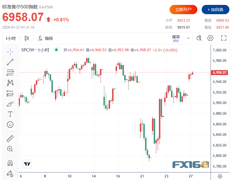 尽管外汇与贵金属波动显著升温,美股周一仍出现修复性反弹:道指上涨0.4%,标普500上涨0.6%,纳指上涨0.6%,在此前连续两周回调后暂时稳住阵脚。