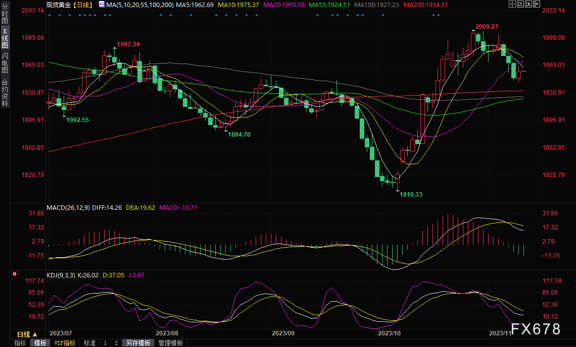 周四(11月9日),由于美联储主席杰罗姆·鲍威尔维持其紧缩倾向,他表示虽然通胀已经下降,但央行仍没有信心控制住通胀。鲍威尔的鹰派讲话帮助美元和美债收益率上涨,但对黄金的影响不大,黄金小幅收涨。