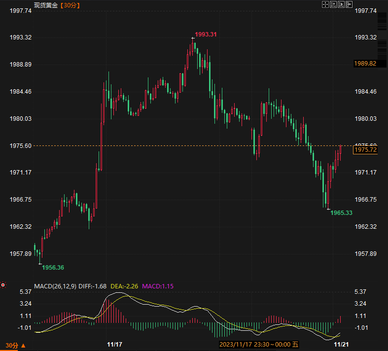 因预期美国利率已见顶,美元指数跌至103.46,为9月初以来的最低水平,因投资者似乎巩固了对美联储明年可能开始降息的押注。