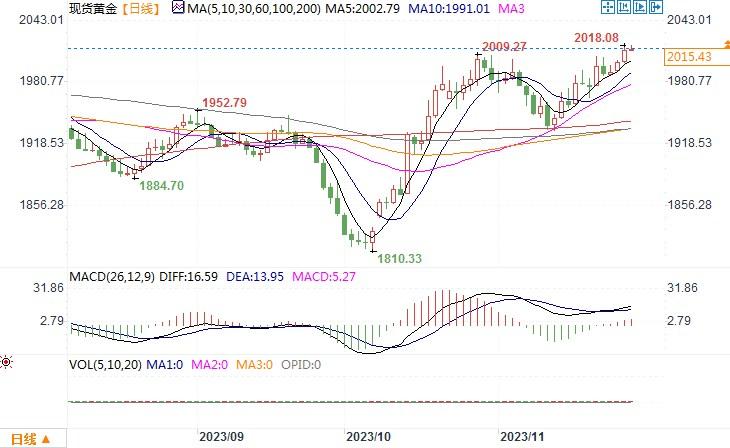 北京时间11月28日11:51 现货黄金 报 2015.43 美元/盎司