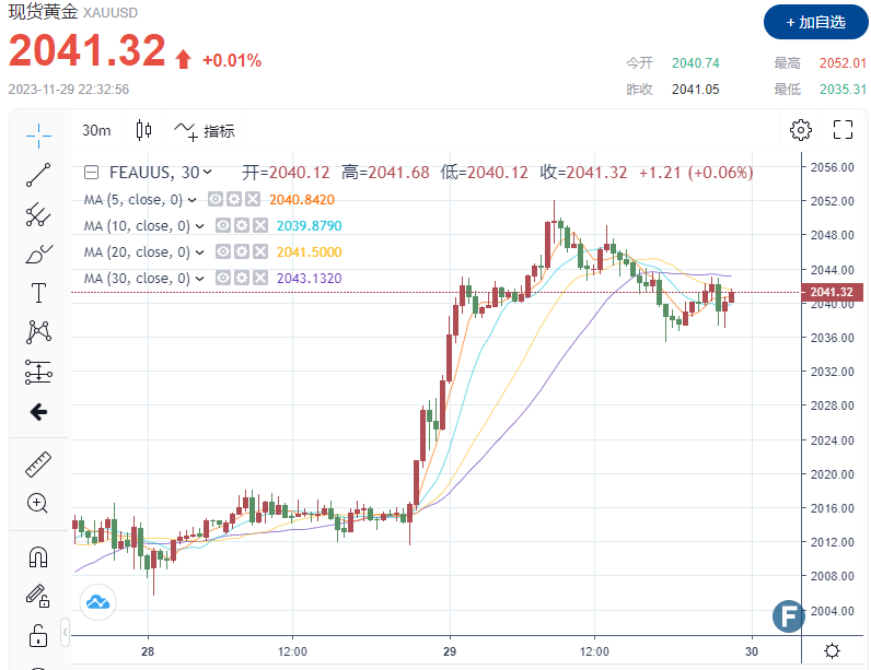 截至发稿,现货黄金现报2041.32美元/盎司。
