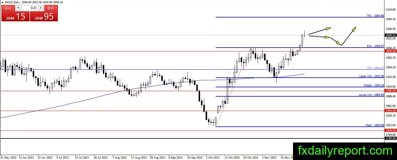 金价仍在上涨,价格已突破昨天的高点。然而,这一看涨走势失去了看涨动力,目前价格徘徊在开盘点位附近。如果价格开始下跌,那么2,000美元点将成为支撑点,交易者等待看涨反应和进入多头头寸的机会。