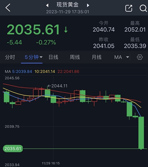 香港时间17:35,现货黄金报2035.61美元/盎司。