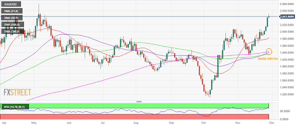 Mehta称,黄金日线图显示,相对强弱指标(RSI)处于超买状态,这向黄金买家发出警告,但即将形成的均线“黄金交叉”使上行保持完好。