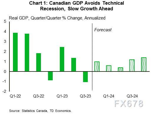 上周的数据显示加拿大没有陷入技术性衰退。在更新的实际GDP数据消除这种可能性之前,这种情况的可能性越来越大。第三季度的国内生产总值实际上出乎意料地下降了,同比收缩了1.1%。但是,对第二季度的强劲向上修正使产出回到正区间,使加拿大摆脱了技术性衰退。