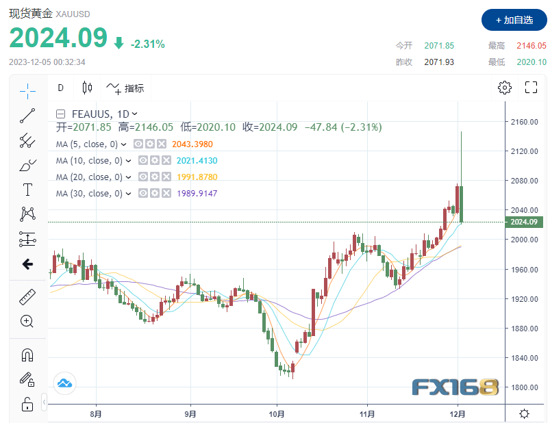 11月29日,美联储理事克里斯托弗·沃勒表示,如果未来3到5个月通胀数据继续放缓,他预计美联储将采取宽松政策,这促使分析师预测金价将上涨。