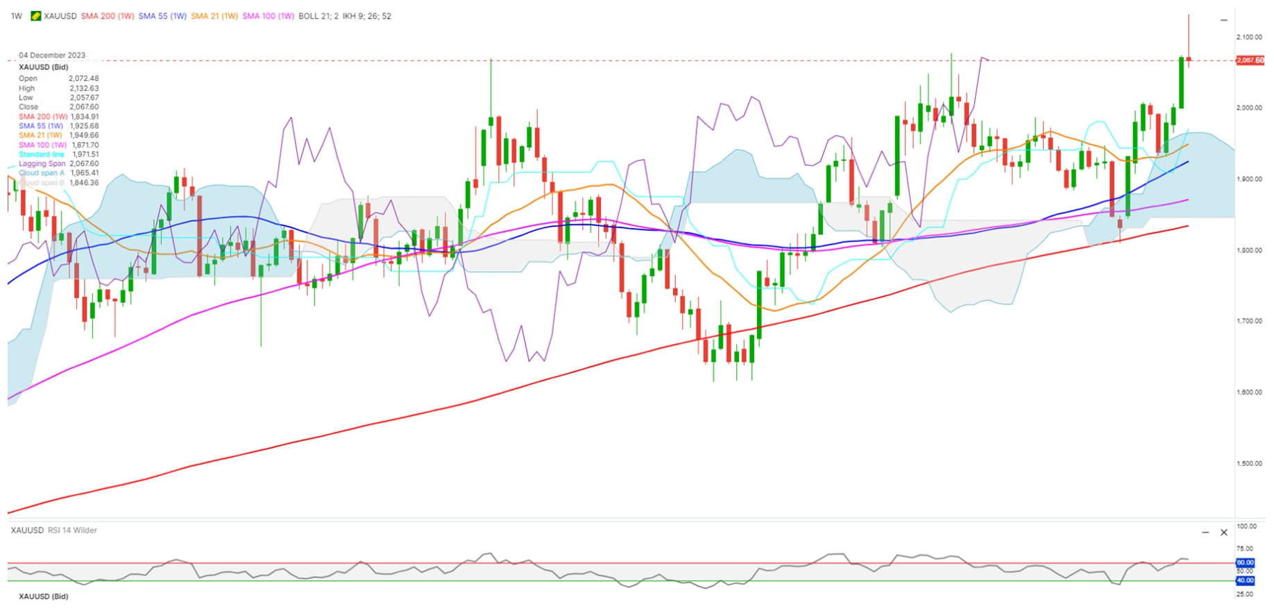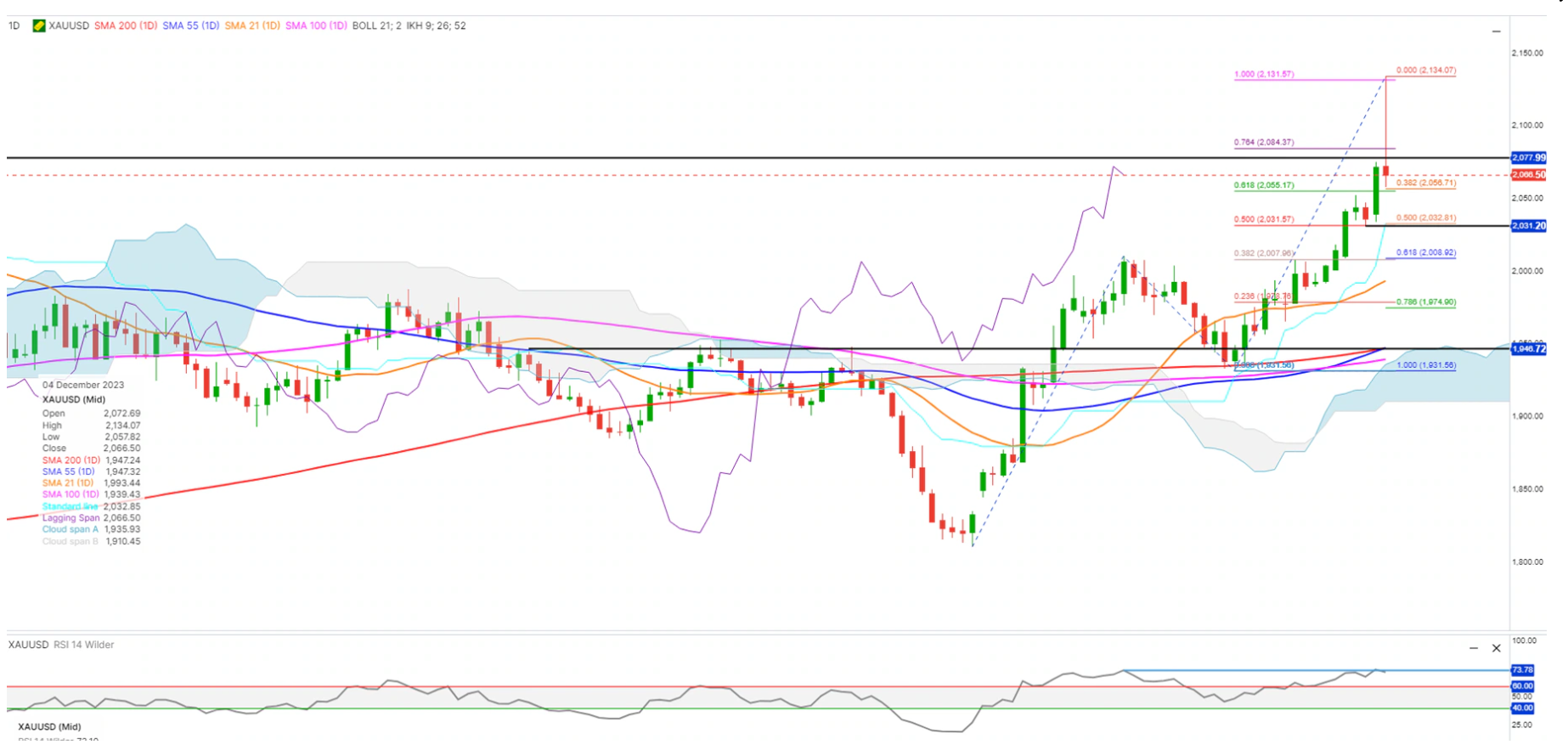 要扭转当前的看涨趋势,黄金收盘价需低于1,930美元。