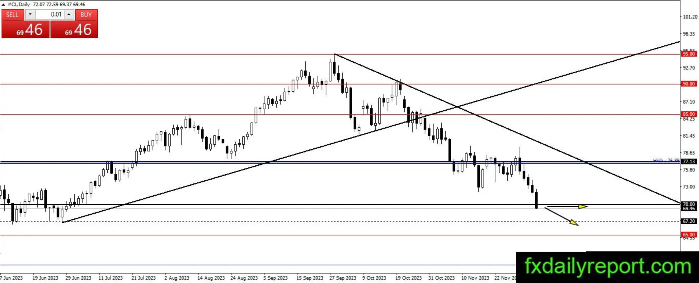 就目前的走势来看,原油价格相当悲观,目前已触及70.00美元。预计价格将在70.00美元附近盘整一段时间。当出现反弹反应时,交易者可以考虑建立多头头寸。