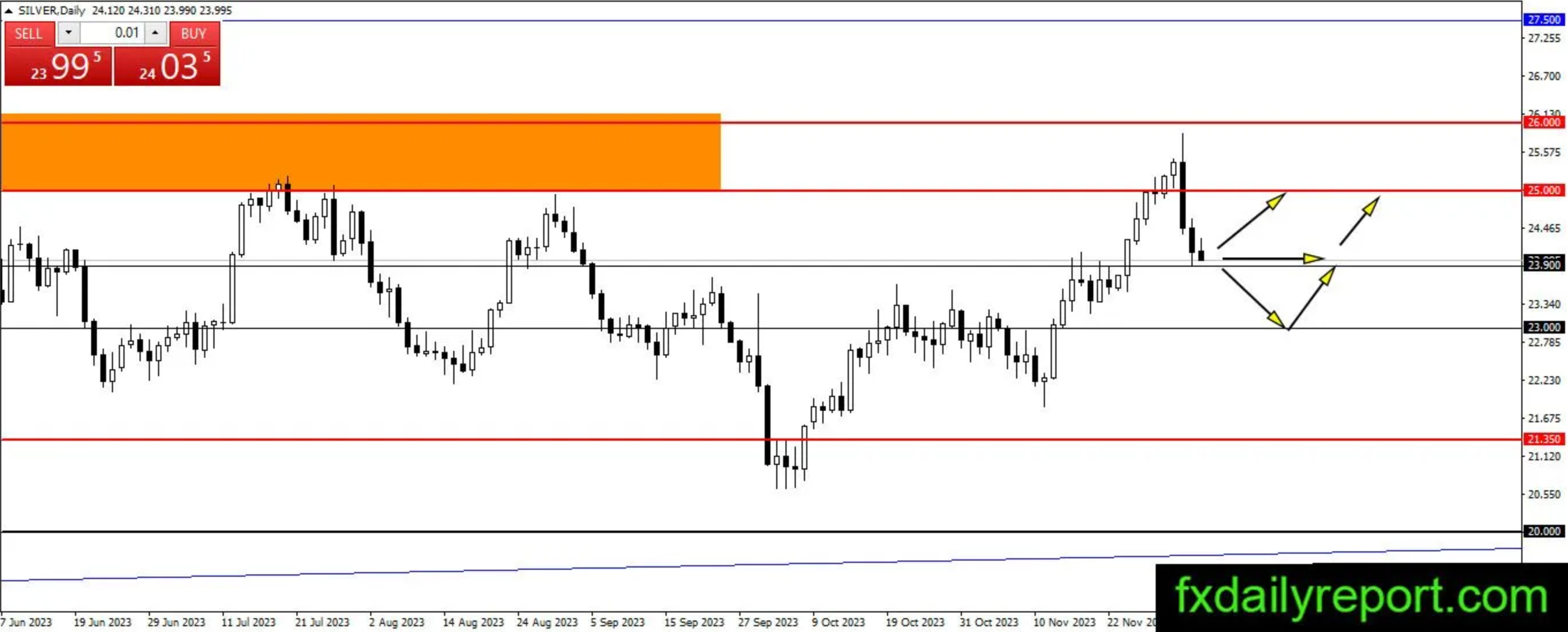 白银价格收盘显示看跌的形态,触及23.90美元,目前价格将进一步测试23.00至23.90美元的区域,交易者将等待进一步的进展。当在关键区域出现反弹反应时,交易者可以建立多头头寸。只要价格能够继续形成更高的摆动高点和更高的摆动低点,趋势的方向仍然是看涨的。