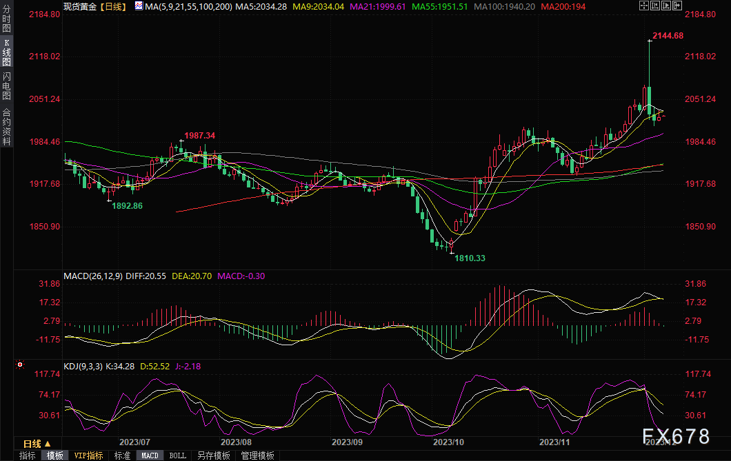 周三(12月6日),黄金在12月4日刷新历史最高价格(2144美元/盎司)后回落,但仍继续吸引市场关注。现货黄金经历前两个交易日的跌势后成功守住2000美元/盎司心理支撑位,而且初步站稳2020关口,周三收涨0.30%,收报2025.30美元/盎司。而COMEX 2月黄金期货则收涨0.57%,收报2047.90美元/盎司。相比之下,COMEX 3月白银期货则下跌1.30%,收报24.228美元/盎司。