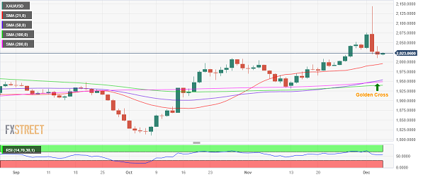 Mehta指出,黄金买家需要在日收市时突破2050美元/盎司的心理障碍,才能恢复向2100美元/盎司的上升趋势。