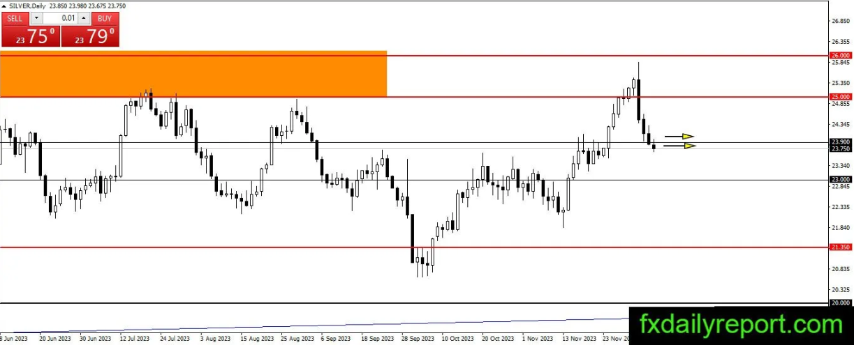 白银价格正在测试23.00至23.90美元区域,预计价格在测试该区域一段时间后将出现反弹反应。当出现看涨反应时,交易者可以准备建立多头头寸。预计非农就业数据公布以及下周美联储会议后将会有所反应。