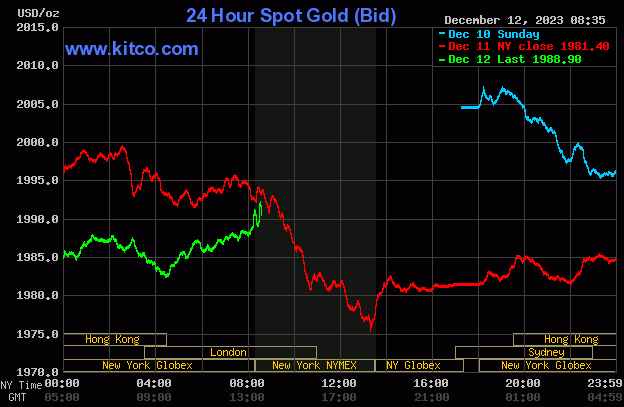 CPI数据公布后,现货黄金短线走高超10美元,至日内高点1996.83,现几乎回吐全部涨幅,报1988.13美元/盎司。