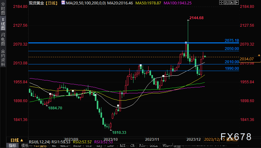 周五(12月15日)亚盘时段,现货黄金窄幅震荡,目前现交投于2035.50美元/盎司附近,基本持平于周四收盘价。