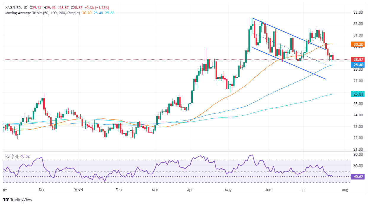 周三(7月24日),尽管美元走软,现货白银仍然遭到抛售,并已经跌破重要关口29.00美元/盎司。FXStreet分析师Christian Borjon Valencia最新撰文,对银价技术走势进行分析。