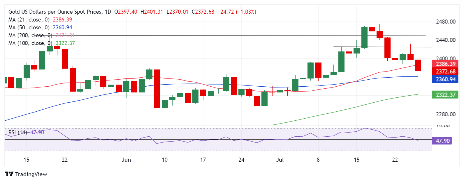 FXStreet高级分析师Dhwani Mehta指出,黄金价格周四大幅下跌,金价可能挑战关键支撑位2360美元/盎司。