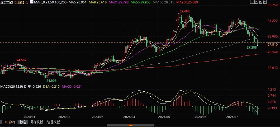 分析师指出,上周白银现货价格自5月以来首次跌破每盎司28美元,银价面临巨大抛售压力。他们表示,美国股市和基本金属的下跌继续波及贵金属市场。随着欧盟经济信心调查出现一年来首次下跌,市场正面临额外压力。