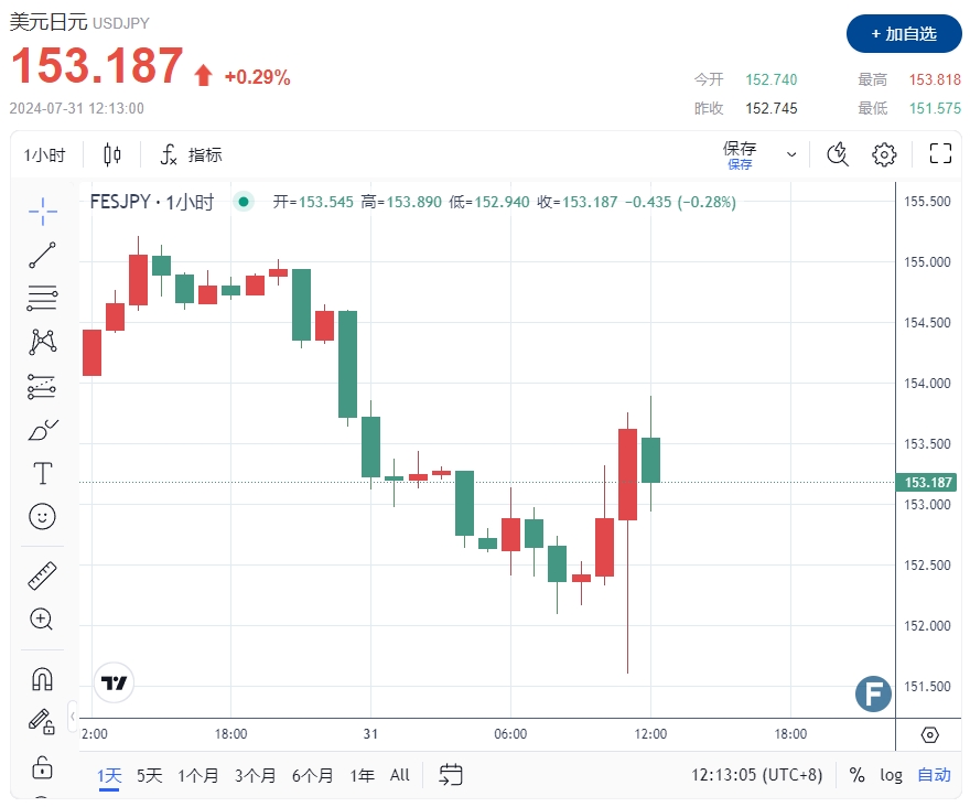 FX168财经报社(亚太)讯 周三(7月31日),美元/日元短线插针触及151.60,日本央行加息15个基点,将政策利率上调至0.15%-0.25%,市场预期维持不变。日本央行一致投票决定缩减债券购买规模,从2026年第一季度起,将每月购债规模减少至3万亿日元。