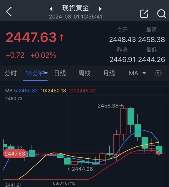 北京时间10:35,现货黄金报2447.63美元/盎司。