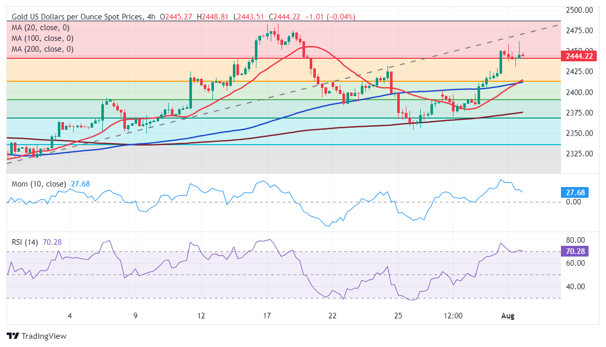 24K99讯 周五(8月2日)亚市盘中,现货黄金短线突然快速上涨,金价正逼近2457美元/盎司。FXStreet首席分析师Valeria Bednarik撰文,对黄金技术前景进行分析。