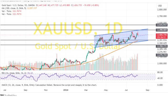 因此,黄金空头将寻求金价延续当前回撤走势,并跌向2402美元/盎司,或更低的2377美元/盎司。另一方面,黄金多头将寻求金价在反弹至2451美元/盎司、或更高的2477美元/盎司时获利了结。