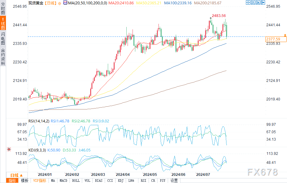 美国7月份失业率意外跃升至4.3%,给金融市场带来了冲击波,加剧了人们对即将到来的经济衰退的担忧。这种经济不确定性通常会增强黄金作为财富保值工具的吸引力。然而,随着投资者努力应对快速变化的经济前景,金价走势仍不稳定。