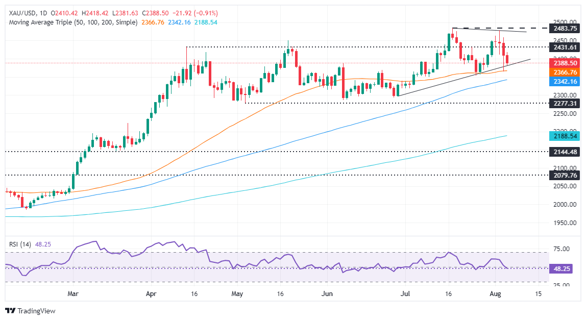 Valencia指出,金价已经跌破2400美元/盎司,这可能为跌破关键支撑位铺平道路。正如相对强弱指数(RSI)所描述的那样,势头急剧转向看跌。