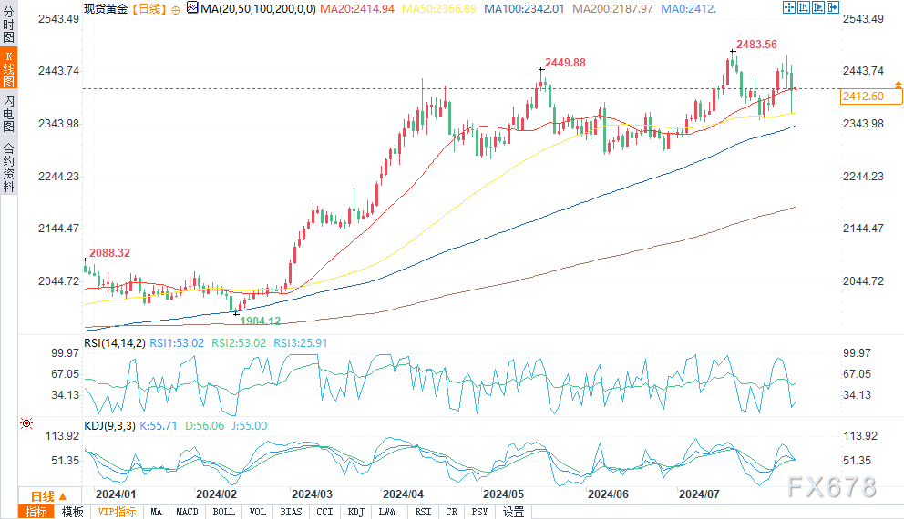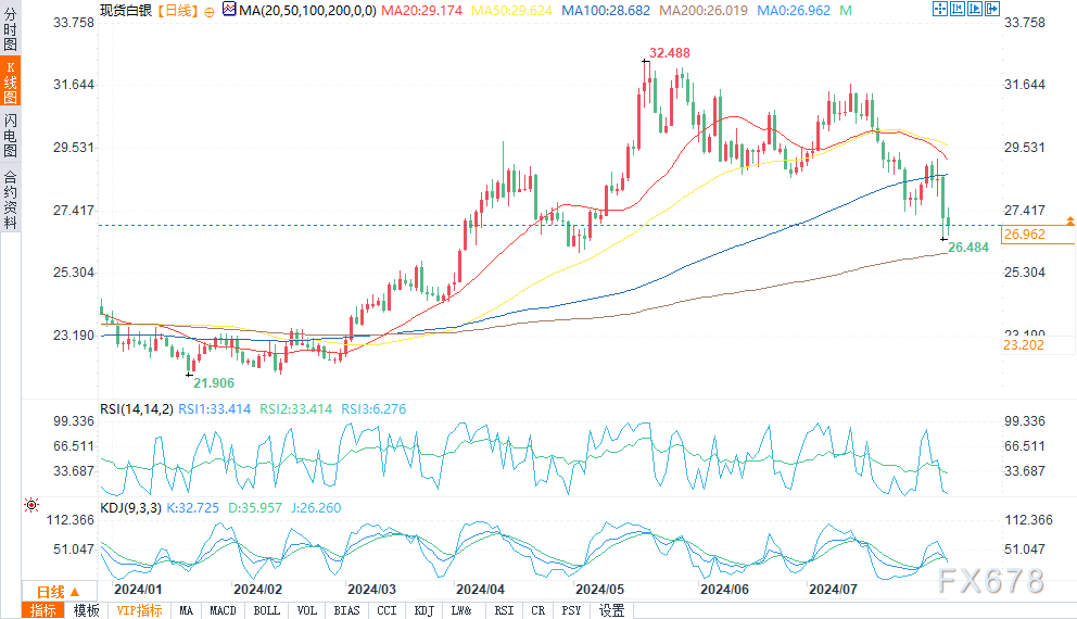 北京时间17:45,现货黄金报2413.3美元/盎司,涨幅0.14%。现货白银报26.954美元/盎司,跌幅0.99%。