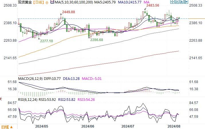 周四(8月8日),现货金上涨1.8%,收盘在每盎司2,426.74美元,结束此前连续五个交易日的跌势。黄金周四的大幅回升,主要受助于强劲的避险需求和对美联储9月将大幅降息的预期还在不断增强。