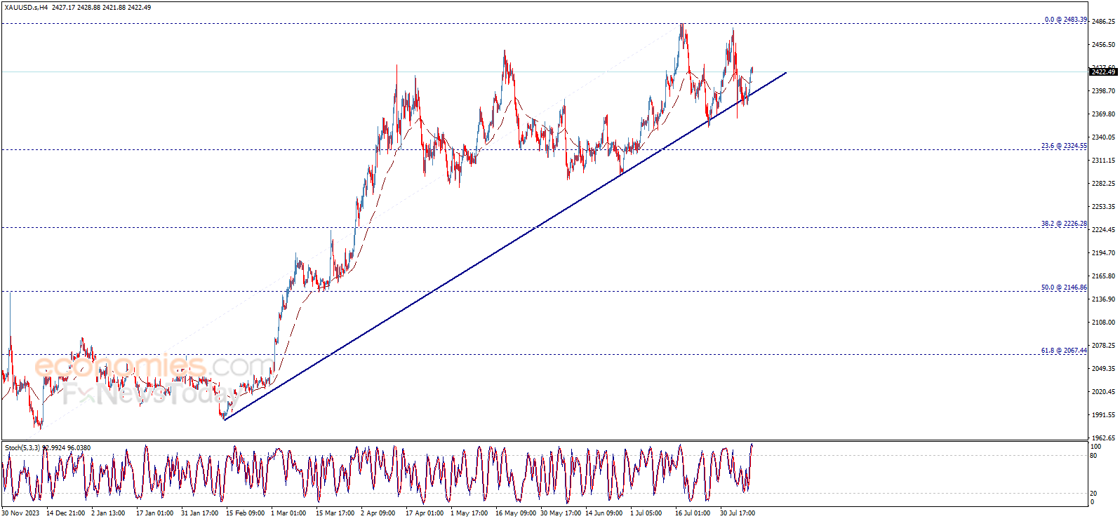 根据Economies.com,除非金价跌破2396.50美元/盎司,否则黄金前景仍然看涨。