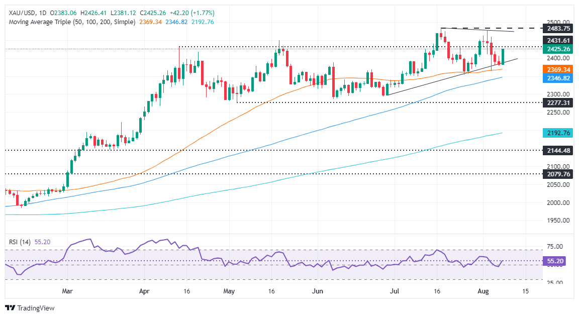 FXStreet分析师Christian Borjon Valencia指出,现货黄金大幅反弹,突破2424美元/盎司的高点,买家关注2450美元/盎司心理关口。相对强弱指数(RSI)显示,买家正在积聚动力,这意味着金价可能进一步走高。