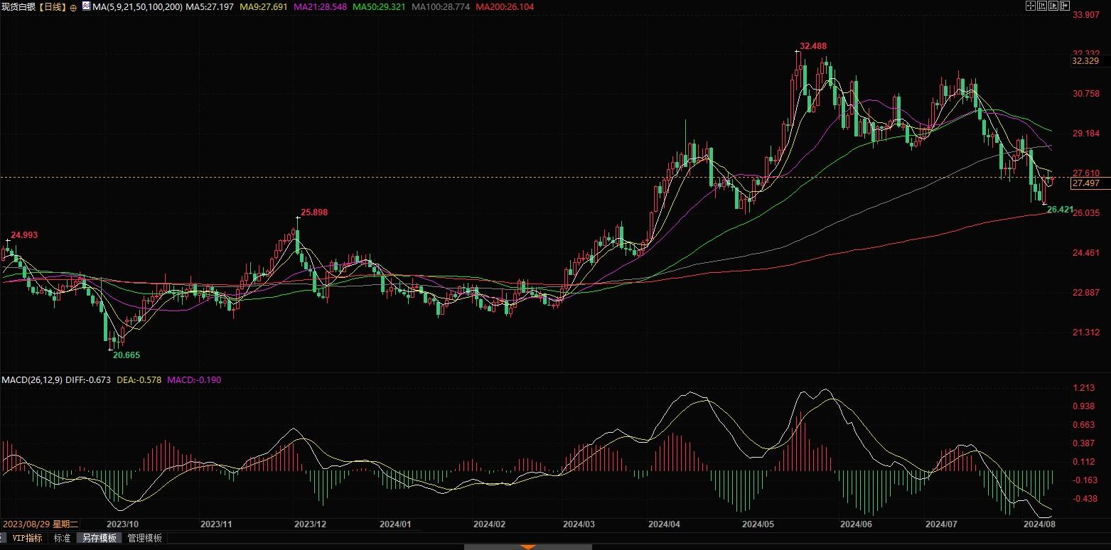 北京时间8月12日13:15,现货白银报27.50美元/盎司