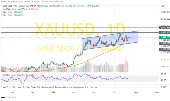 24K99讯 周一(8月12日)亚市盘中,现货黄金交投在2427美元/盎司附近。知名财经网站FXDailyReport分析师Nicholas Kitonyi撰文,对黄金后市走势进行分析。