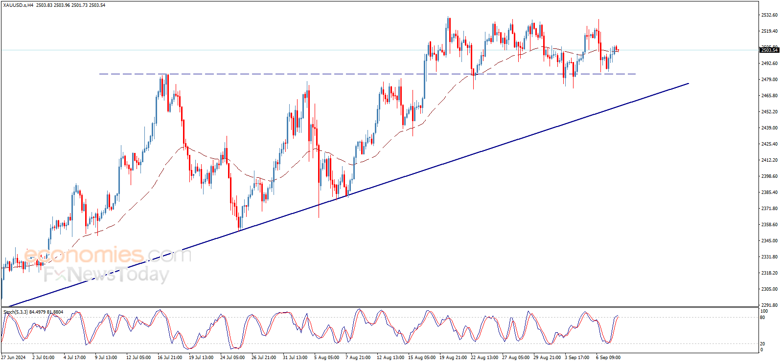 根据Economies.com,金价已经突破小型阻力位2500.00美元/盎司,这为金价进一步升向下一目标2540.00美元/盎司打开空间。