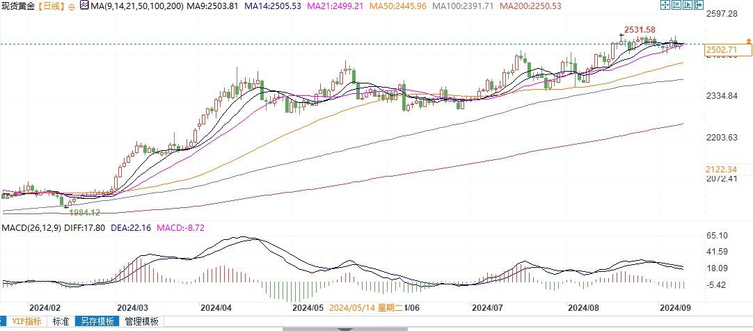 北京时间9月10日13:42,现货黄金报2503.19美元/盎司