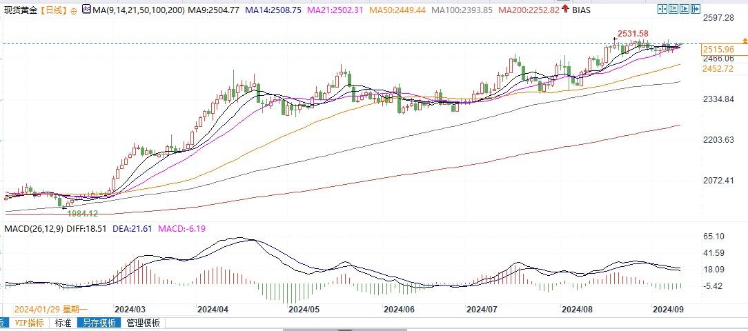 北京时间9月11日9:10,现货黄金报2515.90美元/盎司