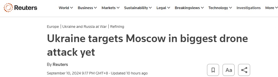 乌克兰对莫斯科发动迄今为止最大规模无人机袭击