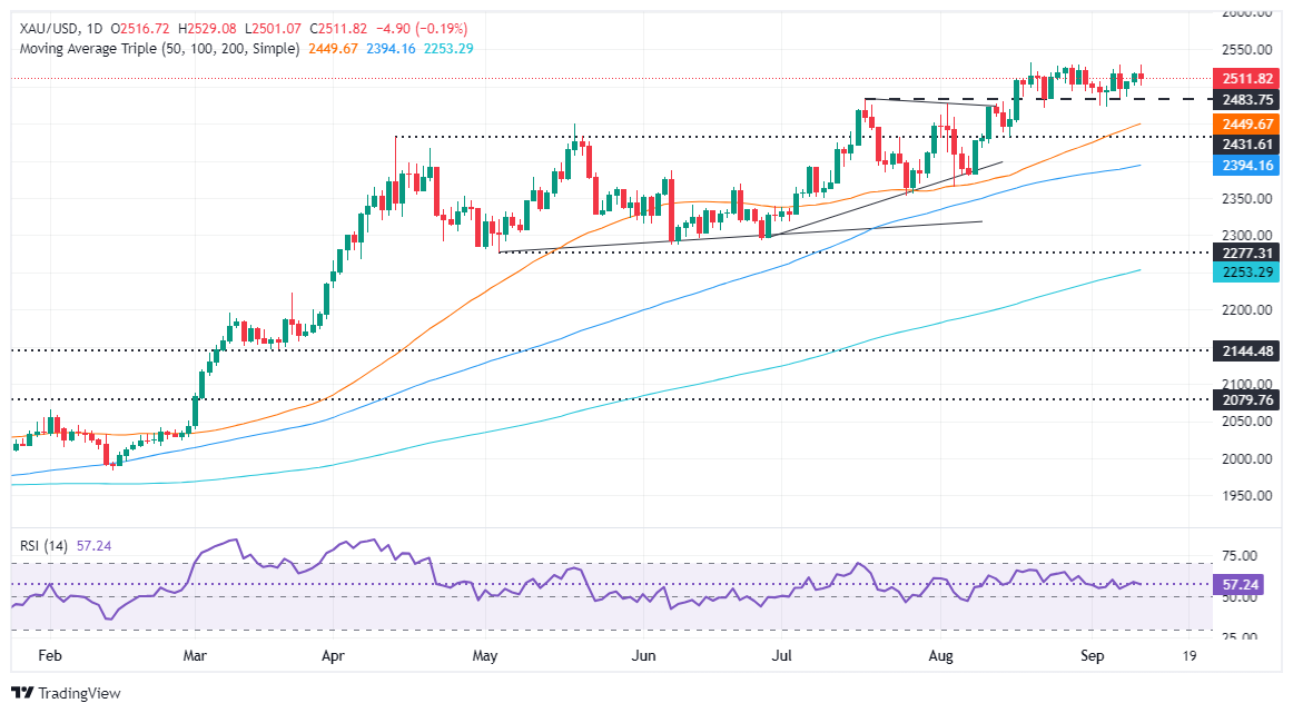 FXStreet分析师Christian Borjon Valencia指出,金价受到抑制,盘整在2500-2531美元/盎司区域内。相对强弱指数(RSI)在中性线上方持平,表明买家和卖家都没有控制局面。