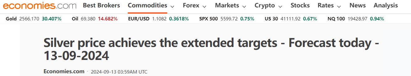 24K99讯 周五(9月13日)亚市尾盘,现货白银在昨日暴涨后维持坚挺走势,银价目前位于30.00美元/盎司附近。知名财经资讯网站Economies.com周五最新撰文,对白银走势进行前瞻分析。