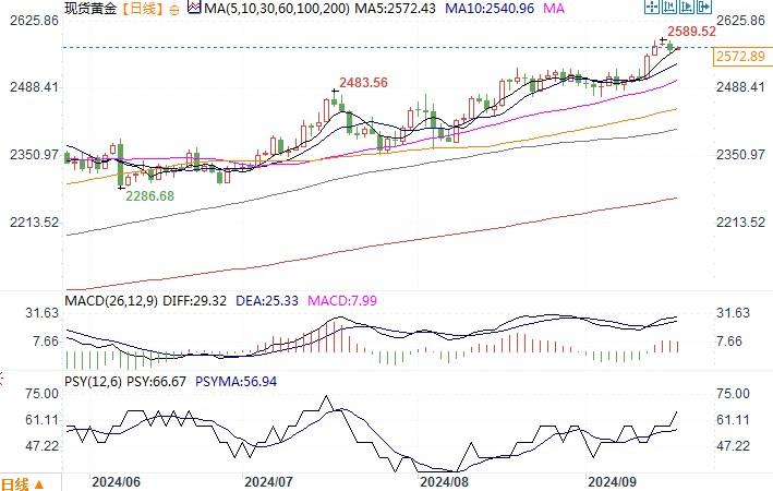 北京时间9月18日10:40 现货黄金 报 2572.89 美元/盎司