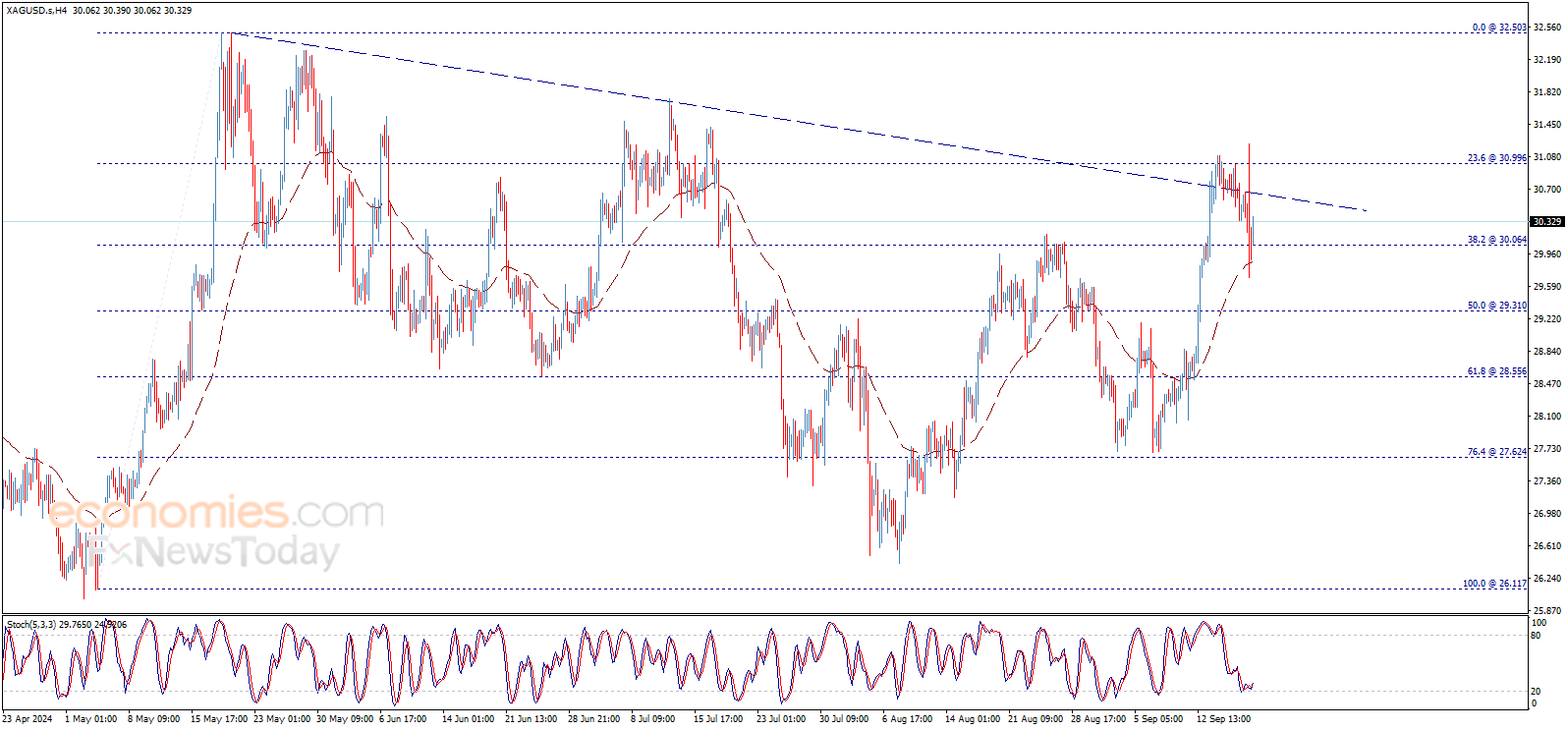 (现货白银4小时图 来源:Economies.com)
