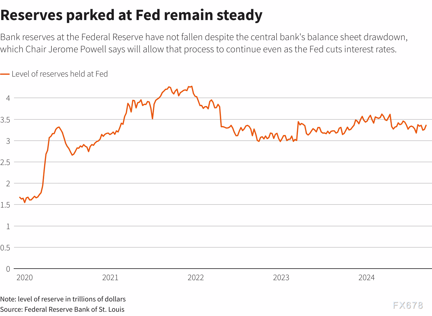 鲍威尔在货币政策会议后举行的新闻发布会上说:"储备依然充裕,而且预计在一段时间内仍将如此。"在这次会议上,美联储以相对较大幅度的0.5个百分点降息行动,拉开了宽松周期的序幕,而随着通胀退潮,未来还会进一步降息。
