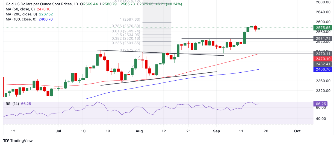 由于市场押注美联储将在今天晚些时候的会议上将利率双倍下调 0.50%,黄金价格在本周初创下了 2,589 美元的历史新高。