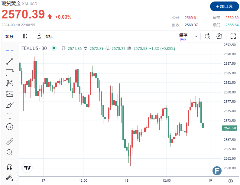 截至发稿,黄金交易价格为 2,570 美元左右。盘中振幅近15美元。