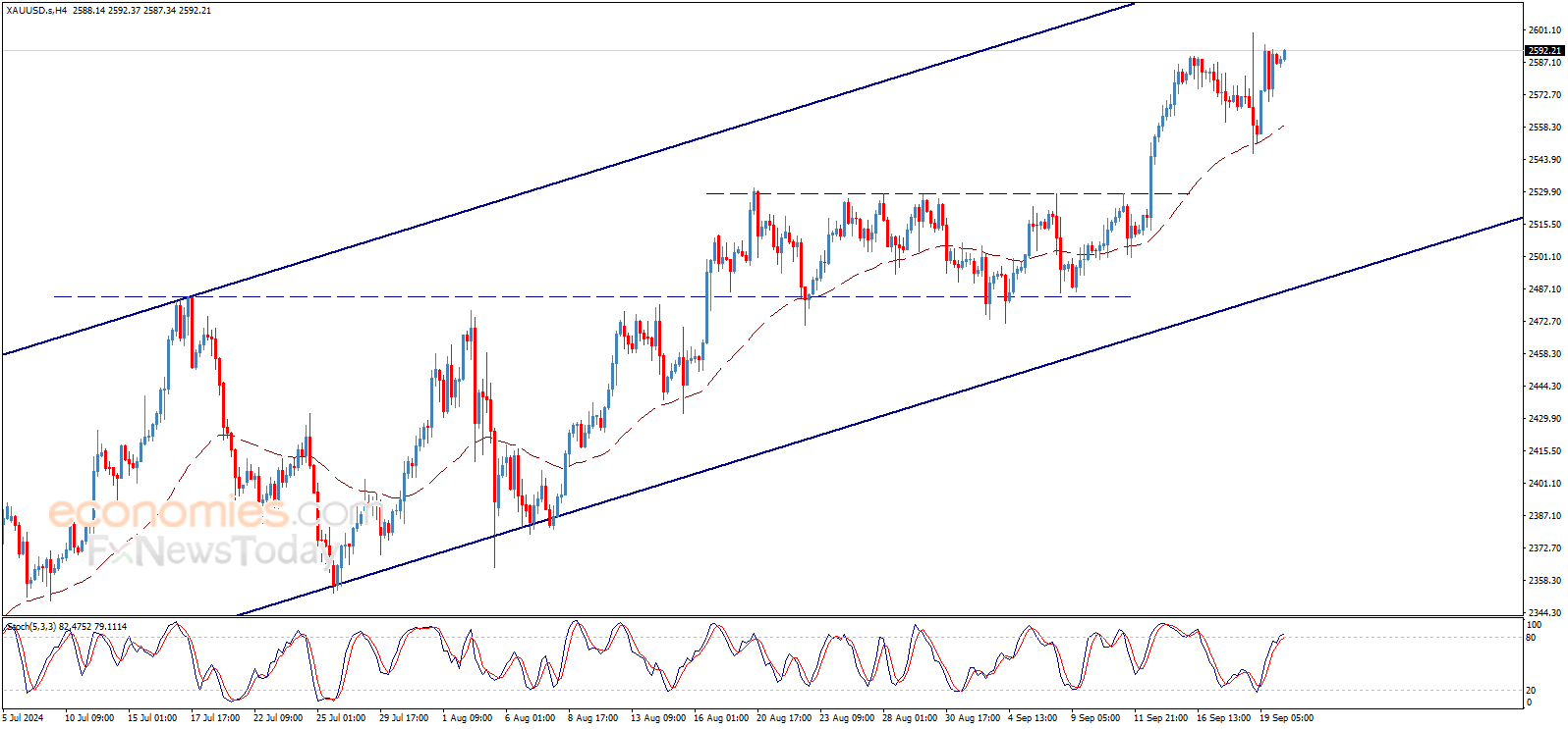 根据Economies.com,黄金价格持续攀升,一旦突破2600.00美元/盎司,金价下一目标将看向2634.50美元/盎司。