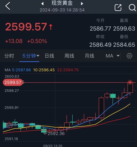 美联储降息后,现货黄金一度飙升至2600.15美元/盎司,创下历史新高。