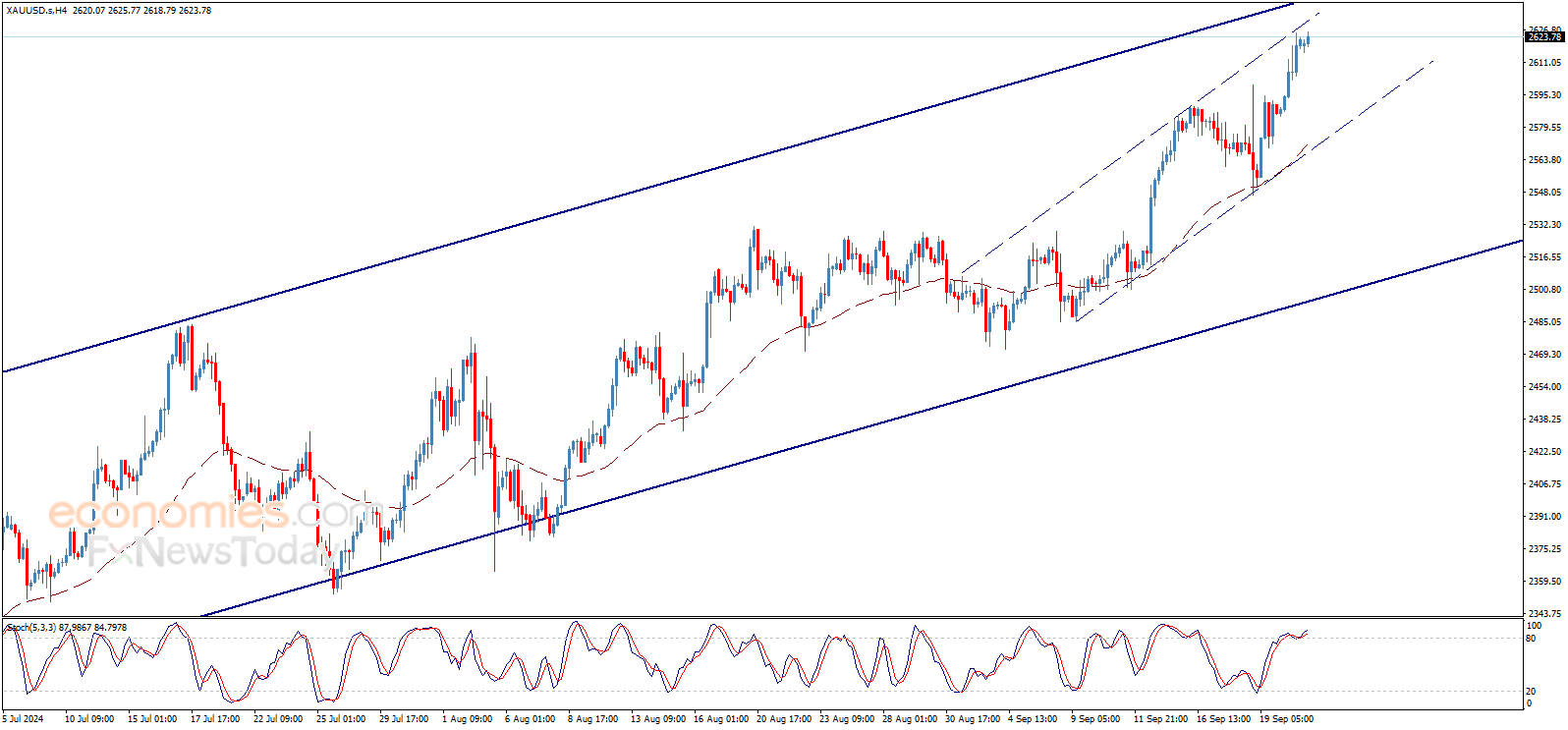 根据Economies.com,金价接近其首个看涨目标2634.50美元/盎司,若突破该位,这将为金价进一步大涨铺平道路。