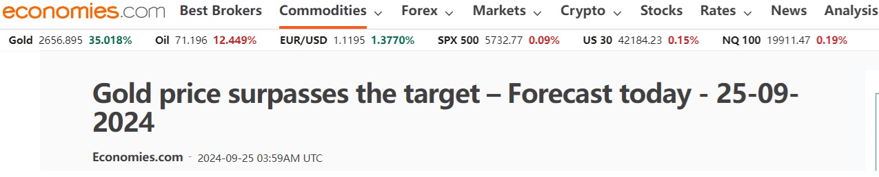 Economies.com在文章中写道,黄金价格昨日反弹,并突破我们等待已久的目标价位2644.65美元/盎司,这为金价在中短期内进一步上涨打开道路。我们相信,金价升至下一主要目标2700.00美元/盎司的道路已经打开。