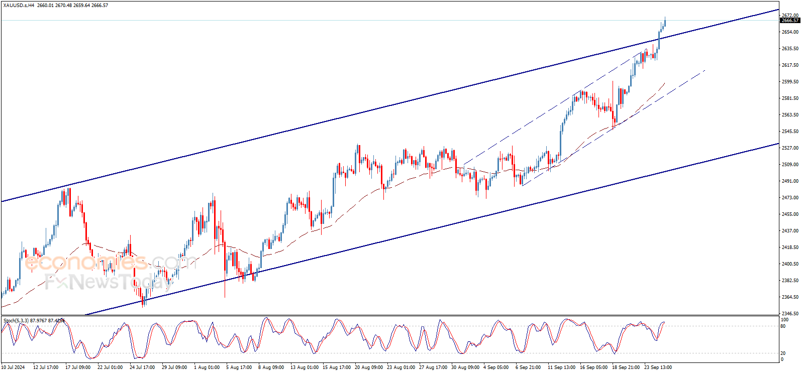 24K99讯 周三(9月25日)亚市尾盘,现货黄金自高位有所回落,目前金价交投在2660美元/盎司附近。知名财经资讯网站Economies.com周三最新撰文,对日内黄金技术前景进行分析。